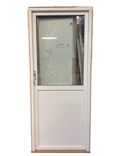 Balkongdøren har noe normal slitasje, men er fullt funksjonell. Leveres med håndtak og hengsler som vist på bildet.
