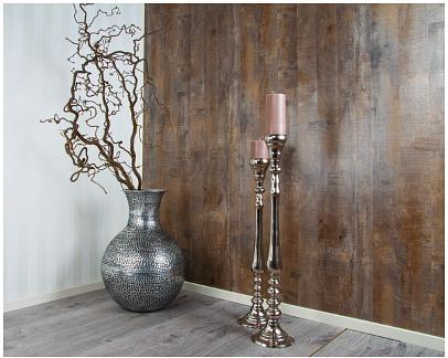 FORESTIA Walls4You er ferdigtapetserte veggplater. Det finnes et bredt utvalg dekorer å velge mellom. Med disse veggplatene trenger man ikke tenke på sparkling, pussing og tapetsering. Med dekor 10462 Rustic Oak skaper du en rustikk stil, hjemme eller på hytta. Stilen gir et lunt og varmt uttrykk. nten det er hjemmet ditt du skal innrede eller det er hytta som trenger en oppgradering, stilen fungerer like bra på soverommet, i stua eller gangen. Fargespekteret gjenspeiler fargene du finner i naturen, og farger som beige, grått og brunt. Husk at plateskjøten til Walls4You limes med en fyldig limstreng.