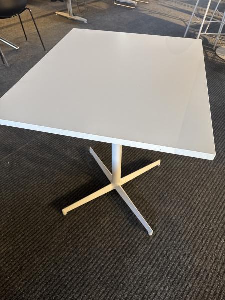 Elegant og stabilt lite bord med pulverlakkert aluminiumsfot og hvit laminatplate. Perfekt som cafébord, møteromsbord eller som et kompakt spisebord i mindre rom.