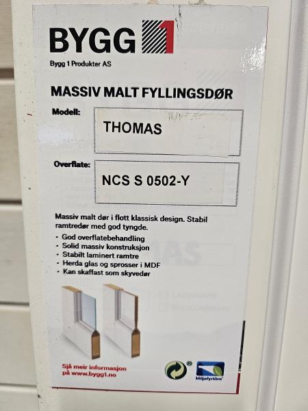 Dørblad u/karm, fyllingsdør, hvit farge 72,5 x 204 cm