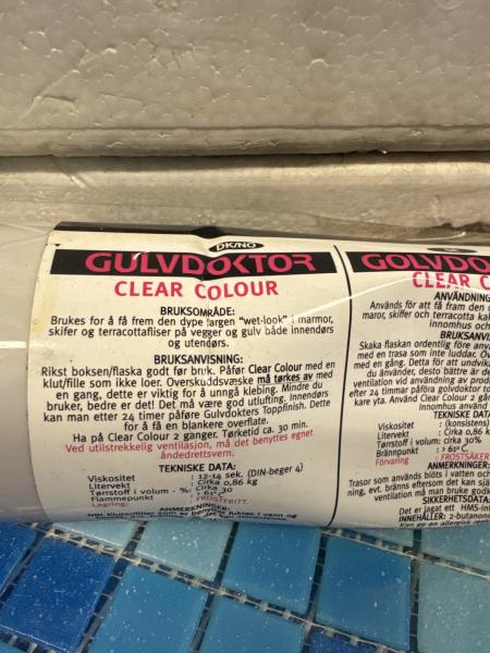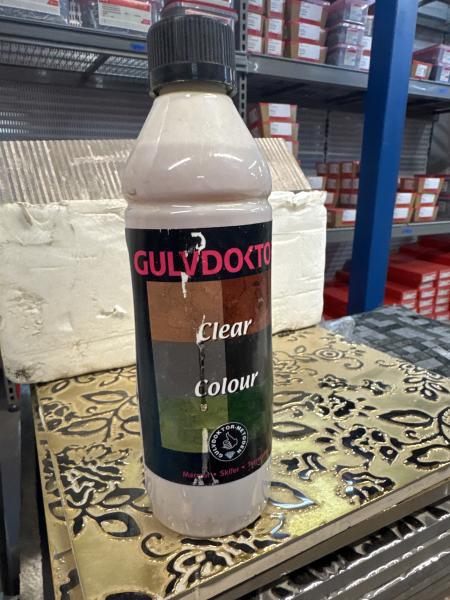 BRUKSOMRÅDE:Brukes for å få frem den dype fargen “wet-look” i marmor, skifer og terracottafliser på vegger og gulv både innendørs og utendørs.BRUKSANVISNING:Rist boksen/flaska godt før bruk. Påfør Clear Colour med en klut/fille som ikke loer. Overskuddsvæske må tørkes av med en gang, dette er viktig for å unngå klebing. Jo mindre dubruker, jo bedre er det! Det må være god utlufting. Innendørs kan man etter 24 timer påføre Gulvdokters Toppfinish. Dette for å få en blankere overflate. Ha på Clear Colour 2 ganger. Tørketid ca. 30 min. Ved utilstrekkelig ventilasjon, må det benyttes egnet åndedrettsvern.