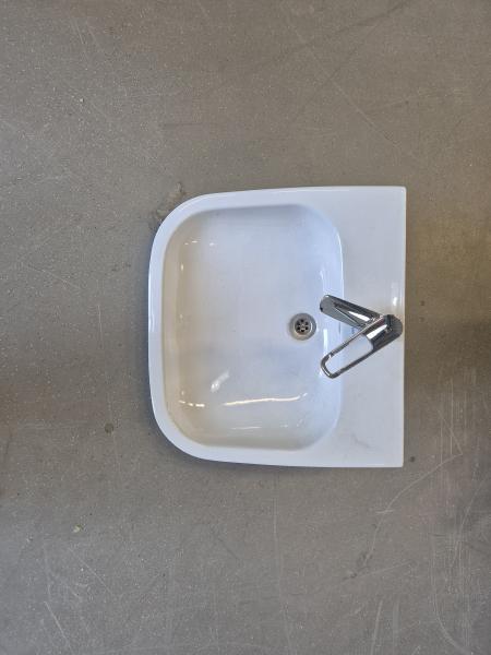 Brukt servant med forhøyet sitte-/brukerkomfort. Komplett med blandebatteri. Komfortabel løsning for brukere med behov for lettere tilgang eller bevegelsesbegrensninger, eller for scrub-områder og gjeste-toaletter.