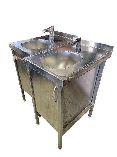 Benken er utstyrt med berøringsfritt blandebatteri, som gir hygienisk og effektiv bruk – perfekt for moderne kjøkkenkrav. Praktisk underskap med dør gir god lagringsplass til utstyr og rengjøringsmidler.