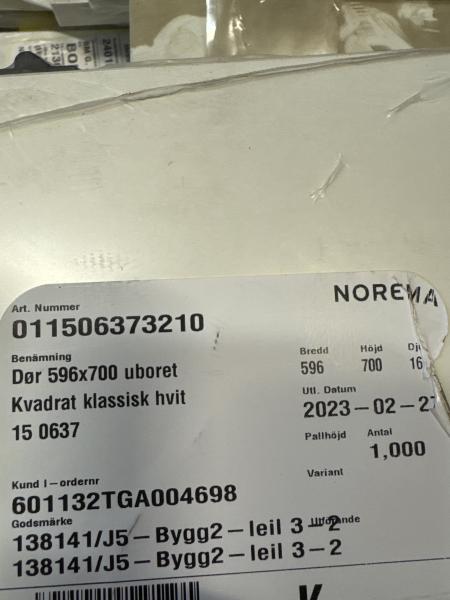 Hus, Hjem og Hage Norema kjøkkenfront dør uboret 60x70 klassisk hvit Pris 199,- per stk Ny Norema kjøkkenfront dør uboret 60x70 klassisk hvit Antall stk På lager Legg i handlevogn Se hvor varen er på lager