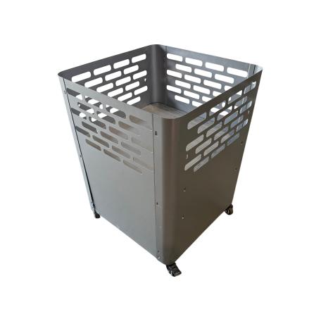 Robust og funksjonell sjokkselger i metall, med hjul for enkel flytting. Kurven måler 60 x 60 cm i bredde og dybde, og er 80 cm høy. Perforerte stålplater gir ventilasjon og synlighet inn i kurven – ideell for kampanjevarer, restesalg eller oppbevaring på lager og butikkområder. Den er godt brukt, men fremstår hel og funksjonell.