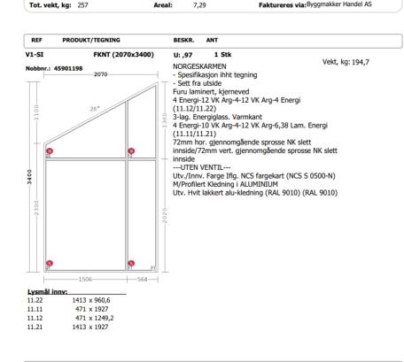 Utførelse: Laminert furu (kjerneved) med utvendig hvitlakkert aluminium (RAL 9010)