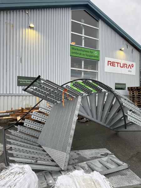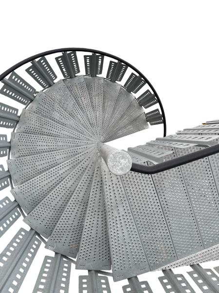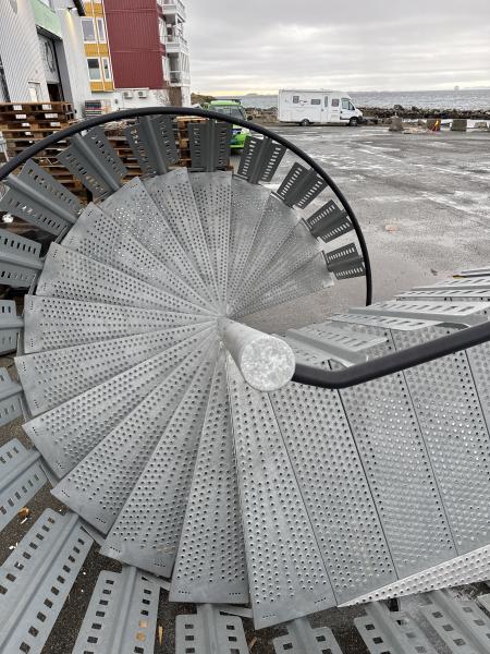 Stor utendørs spiraltrapp G3 i stål fra Midthaug – høyde ca. 3 m / 16 trinn